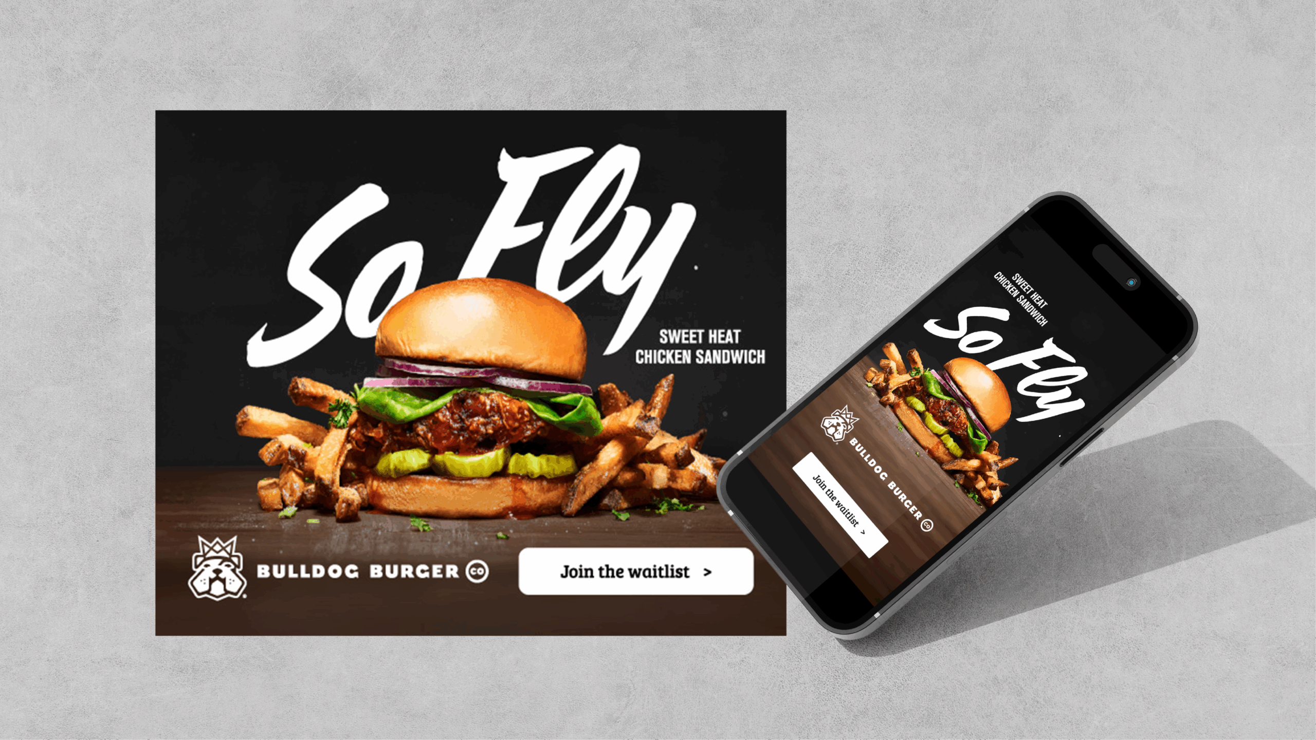 Bulldog Burger Co. keeps the focus exactly where it belongs. Photography and messaging are stripped back, centered on appetite, texture, and clarity. Nothing competes with the product, and nothing needs to. Every piece reinforces a simple idea: when the burger is this good, it deserves the spotlight.