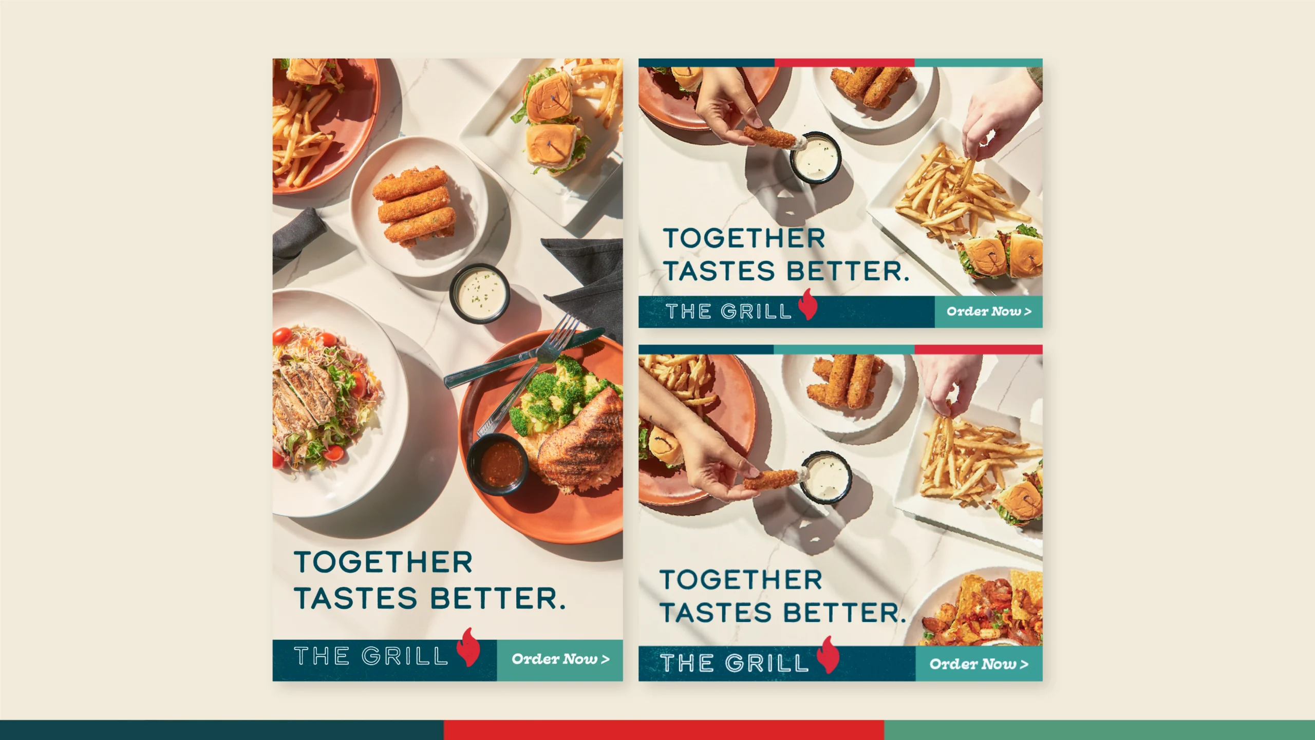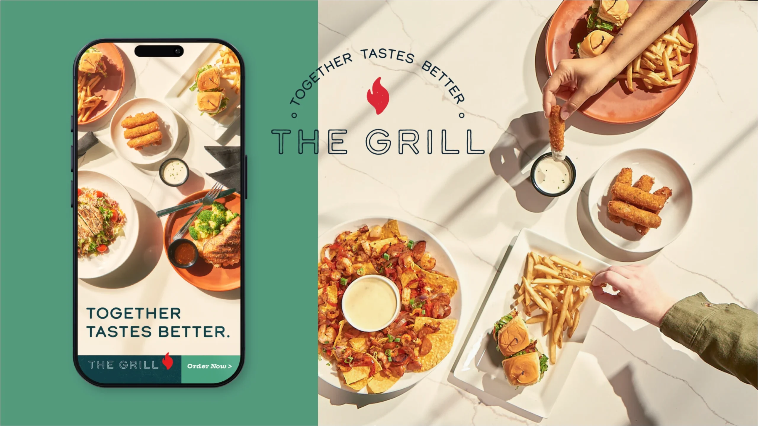 The Grill is framed as a place to come together.“Together Tastes Better” gives diners a clear reason to choose the restaurant, emphasizing shared meals and easy conversation. The work highlights warmth and familiarity, positioning The Grill as a dependable gathering place where food, people, and time spent together all matter.