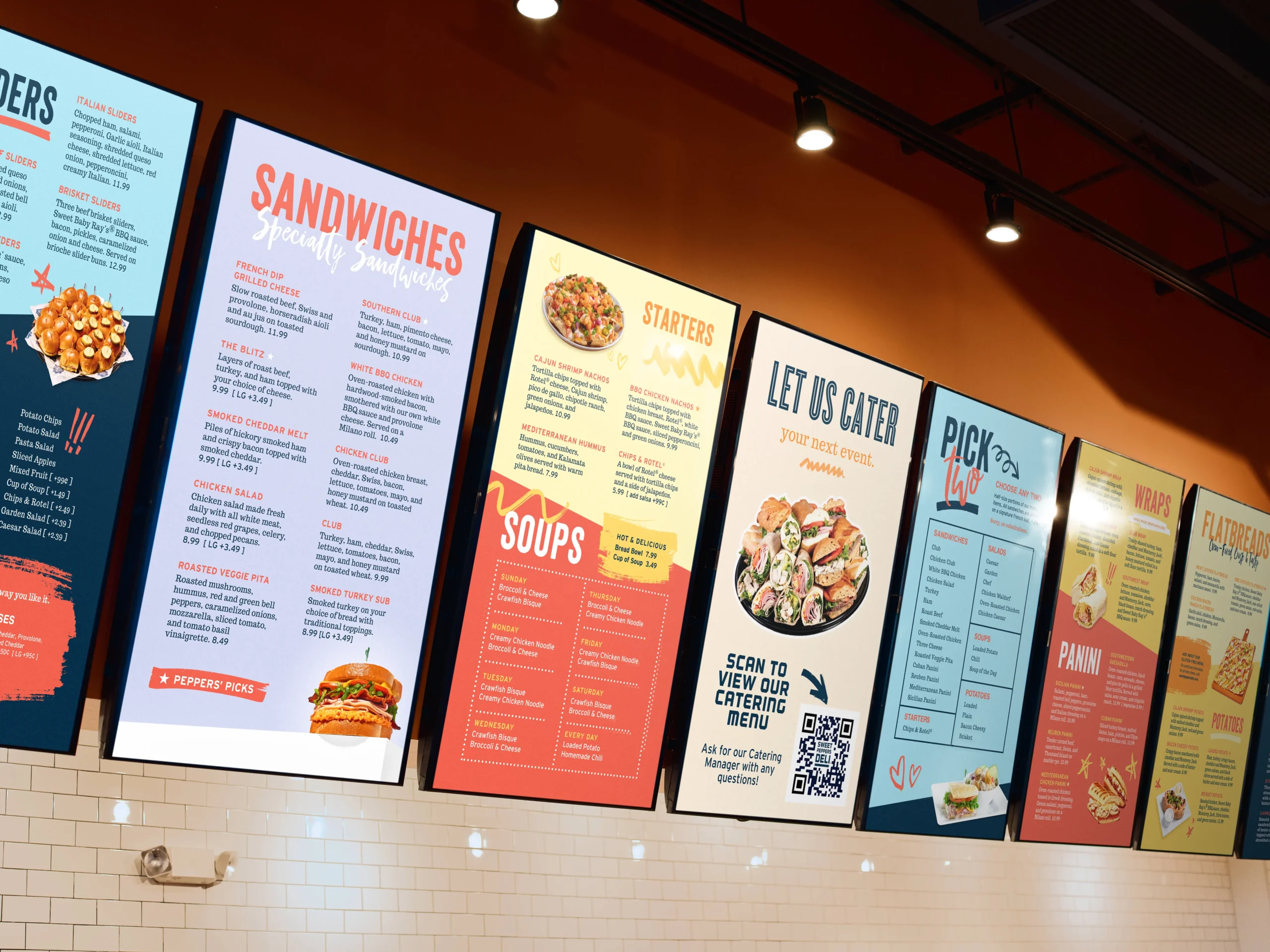 Sweet Peppers Deli required an approach that elevated fast casual dining without slowing it down. Custom signage and artwork bring the brand forward in a clear, confident way, giving the space personality and energy. The environment supports quick service while feeling intentional and welcoming, turning a familiar sandwich shop into a more memorable, branded experience.