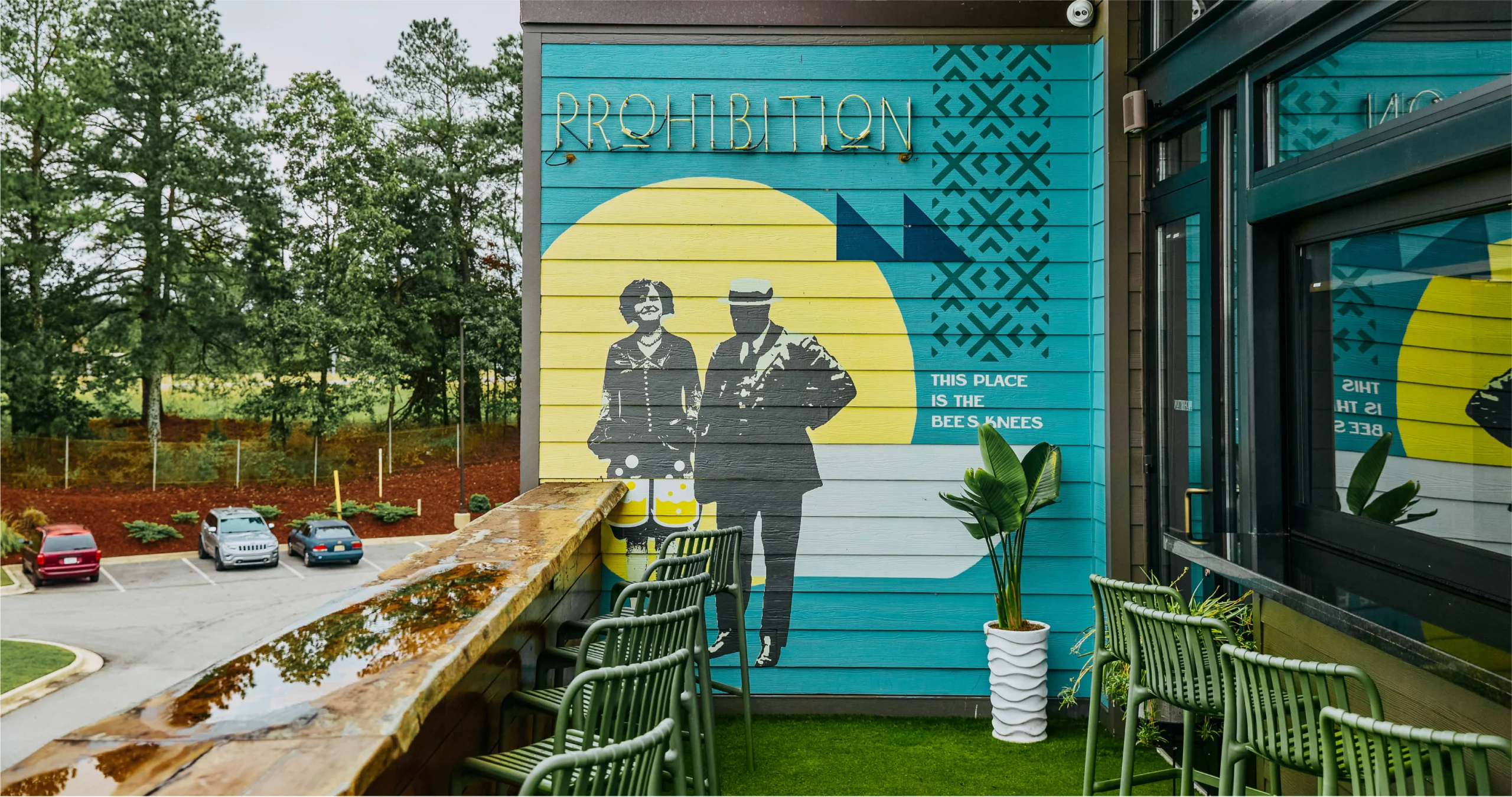 Prohibition was designed to reveal a speakeasy sensibility without hiding it. Distinct areas carry their own character, from the cozy downstairs to the open-air, year-round bar and an intimate patio nook known as the Hideaway. Each space feels purposeful and inviting, creating variety and depth without relying on heavy-handed theme.